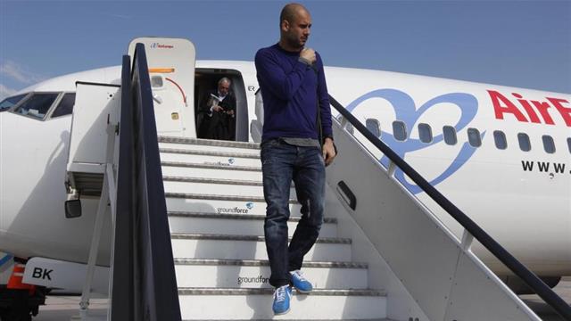 والتقطت كاميرات وسائل الإعلام صورة جوارديولا في مطار إلبرات مع مساعده خوانما ليلو، قبل دقائق من سفرهما إلى مانشستر.