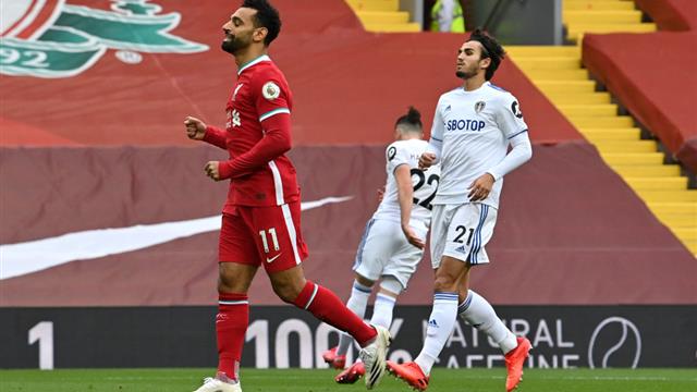 ومنح محمد صلاح التقدم لليفربول في الدقيقة 4، من ركلة جزاء تسبب فيها بعدما ارتطمت تسديدته بيد روبن كوخ، مدافع ليدز.