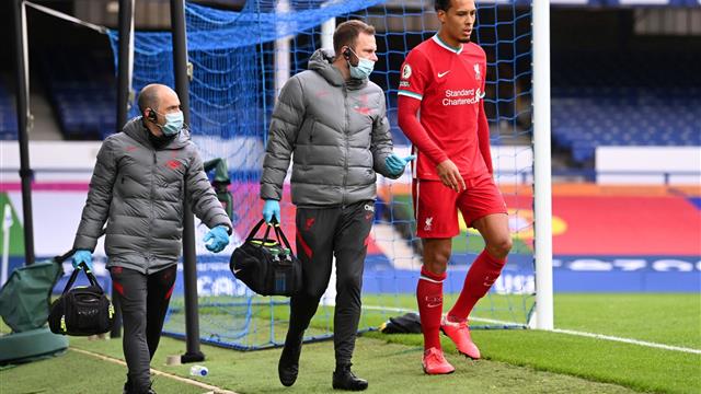 فيديو | فان دايك يغادر مباراة ليفربول وإيفرتون مبكرًا للإصابة