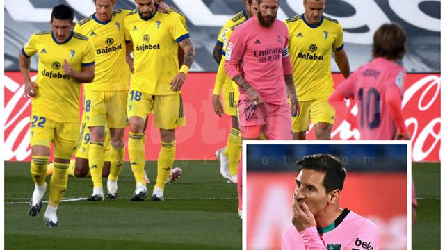سقط قطبا الدوري الإسباني، ريال مدريد وبرشلونة، بهدف نظيف سكن شباك كل منهما، حيث هُزم الأول أمام قادش، والثاني تلقى خسارة على يد خيتافي.
