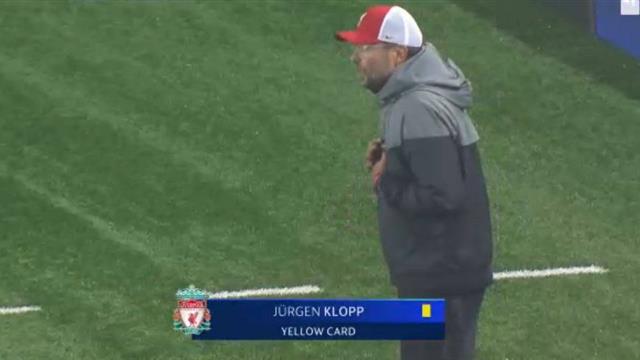 يورجن كلوب طالب بالحصول على ركلة جزاء لـ ليفربول، ولكن يبدو أن طريقة المدرب الألماني لم تنل إعجاب الحكم، الذي قرر إشهار بطاقة صفراء في وجه يورجن.