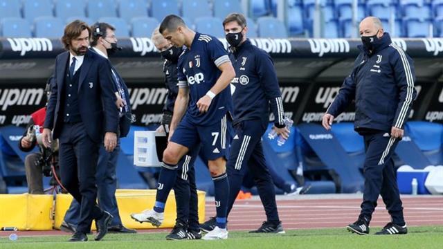 رونالدو سقط في الدقيقة 75 وأمسك بقدمه اليمنى بعد اندفاع على الكرة أمام لويس ألبيرتو، قبل أن يقرر بيرلو استبداله في الدقيقة 76 ودخول باولو ديبالا بدلًا منه.