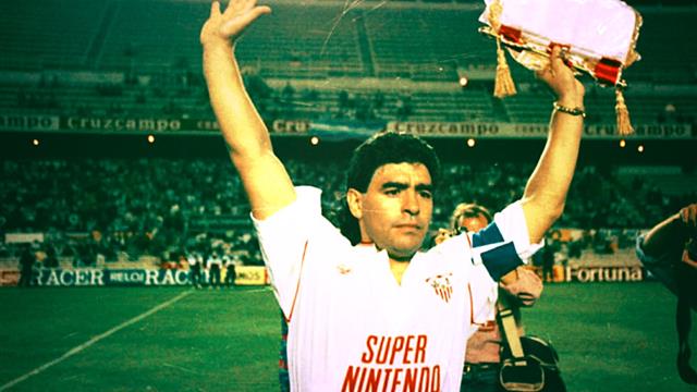 مارادونا لعب مع إشبيلية لمدة عام واحد، في الفترة ما بين عام 1992 حتى 1933 قبل أنّ يعود إلى الأرجنتين من جديد عبر بوابة فريق أولد بويز.