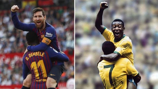 وسجل ميسي 641 هدفا في 743 مباراة مع برشلونة بينما أحرز بيليه سجله التهديفي مع سانتوس في 757 مباراة، ويعتبره فيفا أفضل لاعب في القرن العشرين.