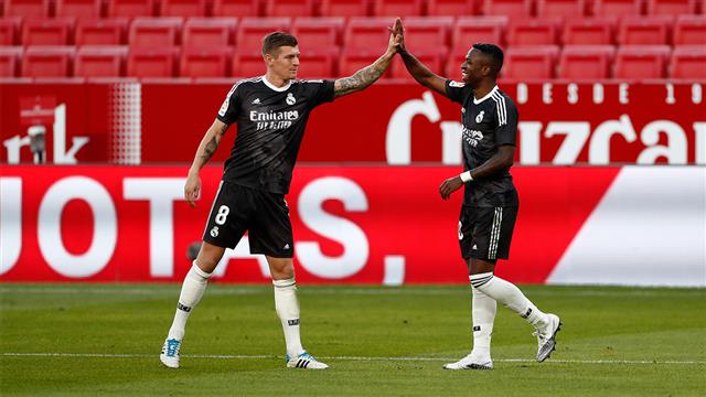 وفاز ريال مدريد بهدف نظيف من تسديدة لـ فينيسيوس، حوّلها المغربي ياسين بونو بالخطأ في مرماه.