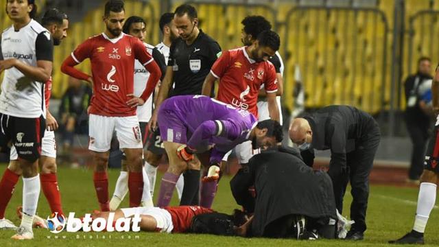 وأصيب لاعب الأهلي بجرحٍ في جبهته وغطت الدماء وجهه، بعد الالتحام العنيف مع مدافع طلائع الجيش.