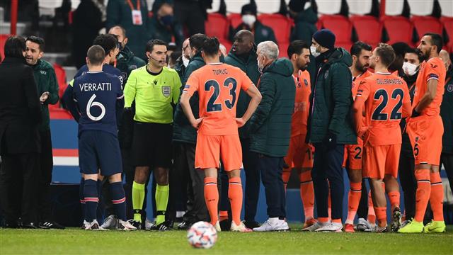 وأعلن باشاك شهير عدم خوضه المباراة إلا بشرط تغيير طاقم التحكيم بالكامل بقيادة الروماني، أوفيديو هاتيجان، بعد تعرض مساعد مدرب الفريق التركي، بيير ويبو، لعبارة عنصرية من طرف الحكم الرابع. (طالع التفاصيل)