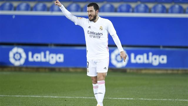 نجح إدين هازارد في تسجيل هدف ريال مدريد الثالث أمام ديبورتيفو ألافيس، في مباراتهما الجارية حاليًا ببطولة الدوري الإسباني.