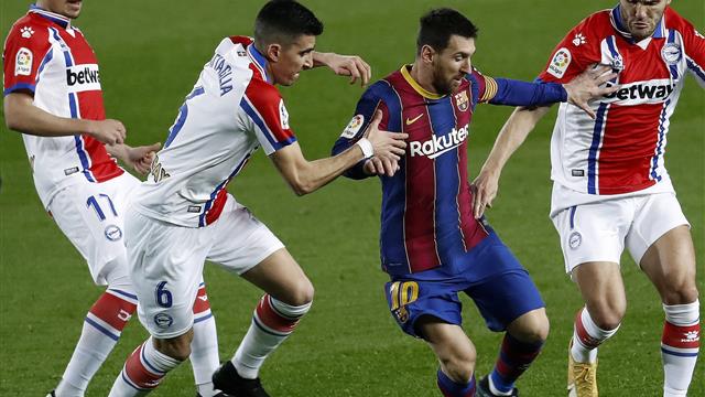 تمكن نجم برشلونة ليونيل ميسي من تسجيل هدف برشلونة الرابع، في المباراة الجارية حاليًا أمام فريق ألافيس في بطولة الدوري الإسباني.