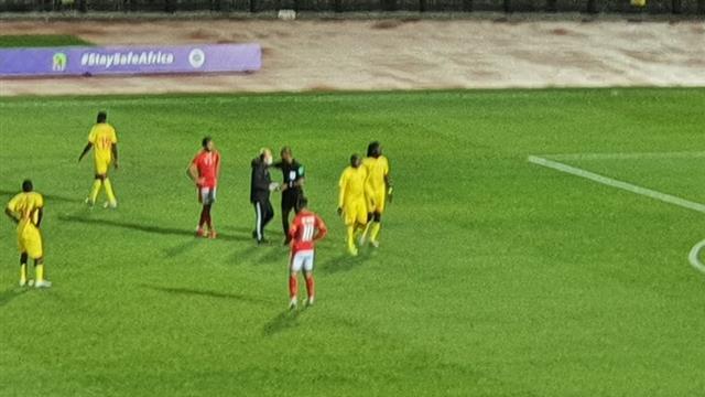 وشهدت الدقيقة 90 من عمر المباراة سقوط الحكم الزامبي سيكازوي علي أرضية الملعب.