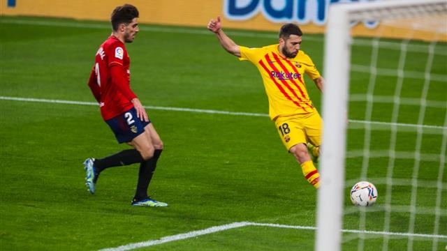 أحرز جوردي ألبا، هدف التقدم لفريقه برشلونة أمام أوساسونا في المباراة المقامة بينهما بمنافسات الدوري الإسباني.