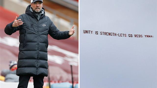 في الشوط الثاني من المباراة، لقطت عدسات الكاميرات، طائرة فوق ملعب آنفيلد، عليها رسالة للاعبي ليفربول.