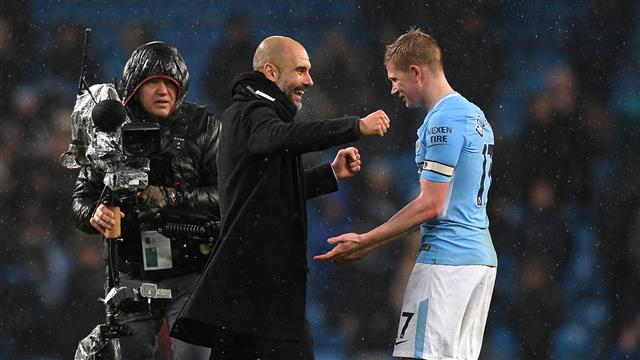دي بروين متفقًا مع جوارديولا: فوز مانشستر سيتي بالرباعية هذا الموسم أمر صعب