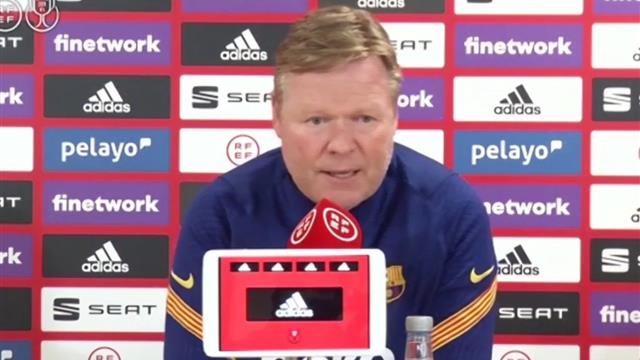 ظهر رونالد كومان المدير الفني لفريق برشلونة في مؤتمر صحفي مساء اليوم قبل مباراة الغد في نهائي كأس ملك إسبانيا.