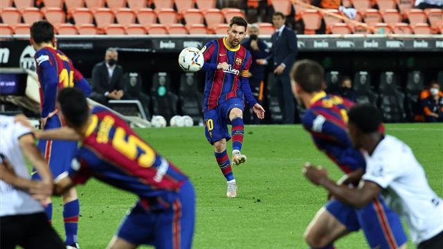 فيديو | من ضربة ثابتة رائعة.. ميسي يُعاقب فالنسيا ويسجل الهدف الثالث لـ برشلونة