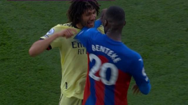 دخل المصري، محمد النني، لاعب وسط فريق آرسنال، في مُشادة مع البلجيكي، كريستيان بنتيكي، مُهاجم كريستال بالاس، خلال المباراة الجارية بينهما في الدوري الإنجليزي الممتاز.