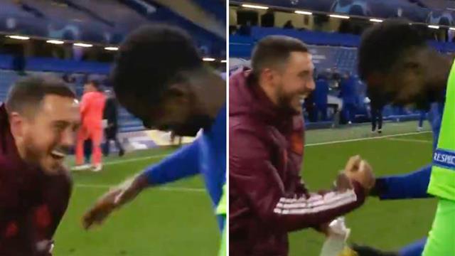 وعقب خسارة ريال مدريد أمام تشيلسي في إياب نصف النهائي بهدفين مقابل هدف، ظهر هازارد وهو يضحك بشدة مع زملائه القدامى في النادي اللندني.