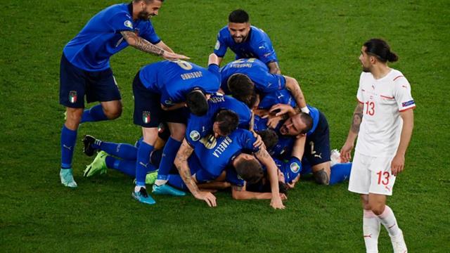 وفاز منتخب إيطاليا على سويسرا بثلاثية نظيفة، في الجولة الثانية لدور المجموعات، وقد حقق فوزًا في افتتاحية البطولة أمام تركيا بنفس النتيجة.