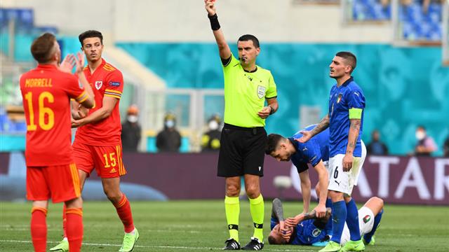 تلقى ايثان أمبادو لاعب منتخب ويلز بطاقة حمراء وغادر المباراة التي يلاقي فيها نظيره الإيطالي، ضمن الجولة الثالثة من المجموعة الأولى ببطولة يورو 2020.