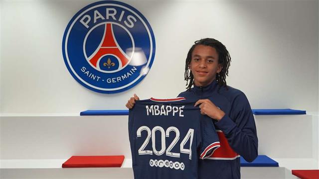 إيثيان مبابي من مواليد عام 2006، وقد وقع عقدًا مع باريس سان جيرمان حتى 2024.