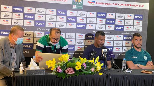 وقال مدرب الرجاء في المؤتمر الصحفي إن عودة عبد الإله الحفيظي للمشاركة في المباريات غير واضحة حتى الآن وسيتم حسمها في الساعات المقبلة في ظل معاناته من إصابة مؤخرًا، مشيرا إلى أنه يركز تمامًا على اللقاء وطالب لاعبيه بعدم الغرور والتوازن بين الدفاع والهجوم، وأنه سعيد بعدم تلقي أي أهداف في الذهاب بالقاهرة، مشددًا على أنه يأمل كذلك في عدم استقبال أهداف بمباراة الغد، ويتمنى أن يصل للنهائي.