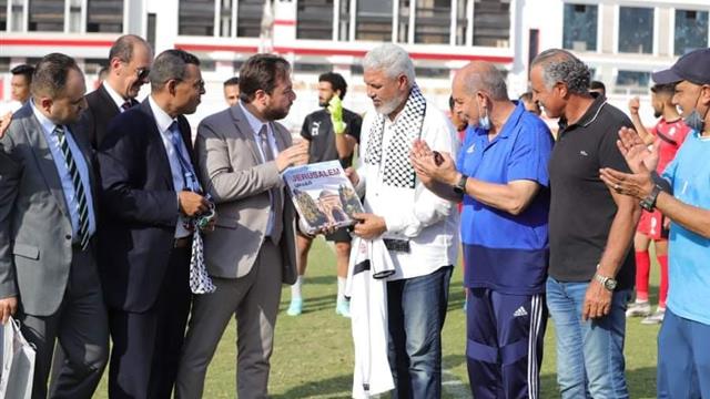 وتسلم المستشار ناجي ناجي ممثل السفارة الفلسطينية بالقاهرة درع النادي، كذلك قام الموفد بتسليم مسؤولي الزمالك الكوفية الفلسطينية للكابتن بدر حامد مدير قطاع الناشئين.