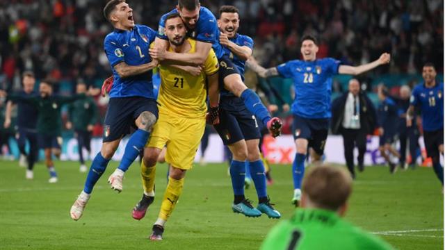 دوناروما ساهم في تأهل إيطاليا لنصف النهائي أيضًا بركلات الترجيح أمام إسبانيا، واليوم تصدى لركلة حاسمة وهي الأخيرة أمام إنجلترا ليضع الآتزوري على منصة التتويج.