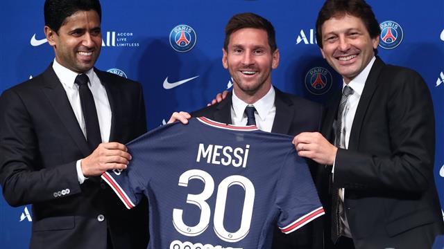 الخليفي: "سعيد وفخور كوننا نقدم لكم ليونيل ميسي لاعبًا في صفوف باريس سان جيرمان، هذا يوم تاريخي ورائع بالنسبة لنادينا، لأنه اللاعب الوحيد الذي حصل على 6 كرات ذهبية في العالم ويمتعنا بسحره الفريد".