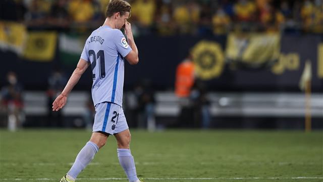 طرد حكم مباراة برشلونة وقادش، الهولندي فرينكي دي يونج، في المواجهة الجارية بين الفريقين بمنافسات الدوري الإسباني.