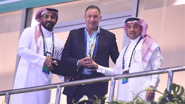 كرم الاتحاد السعودي لكرة اليد، محمود الخطيب، رئيس النادي الأهلي، على هامش بطولة العالم للأندية لكرة اليد سوبر جلوب 2021.