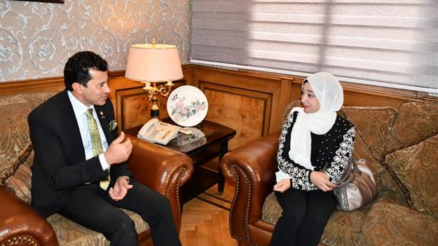 صور.. وزير الرياضة يستقبل زوجة الراحل علاء علي ويعينها بنادي "النادي"