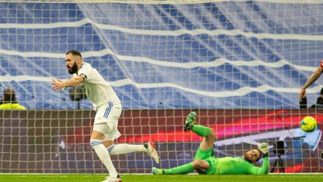 وافتتح الفرنسي كريم بنزيما التسجيل لريال مدريد بهدف رائع من تسديدة قوية على الطائر بعد لعبة رائعة وتمريرات بينه وبين أسينسيو وفينيسيوس جونيور، حيث أرسل البرازيلي عرضية وصلت للفرنسي وسجل في الدقيقة 15.