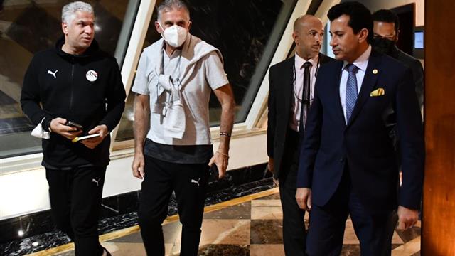 صور | أشرف صبحي يزور منتخب مصر ويوجه رسالة تحفيزية لـ كيروش واللاعبين قبل السفر لـ أمم إفريقيا