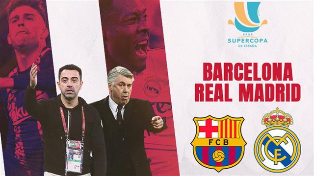 يلتقي فريق برشلونة مع ريال مدريد، مساء اليوم الأربعاء، في كأس السوبر الإسباني، والذي تستضيفه المملكة العربية السعودية.