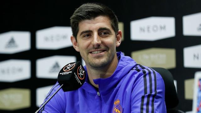 ظهر الدولي البلجيكي، تيبو كورتوا، حارس مرمى فريق ريال مدريد، في مؤتمر صحفي، للحديث عن مباراة الغد أمام أتلتيك بلباو في نهائي كأس السوبر الإسباني.