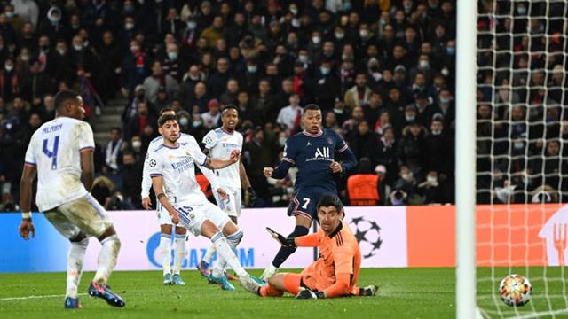 سجل الفرنسي كيليان مبابي هدفًا قاتلاً لفريقه باريس سان جيرمان في مرمى ريال مدريد، خلال المباراة بين الفريقين ببطولة دوري أبطال أوروبا.