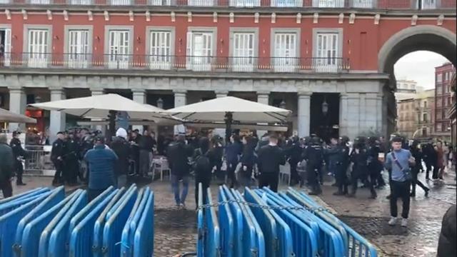 🚔 Cargas policiales en la Plaza Mayor por enfrentamientos entre aficionados del @ChelseaFC y @ManCity