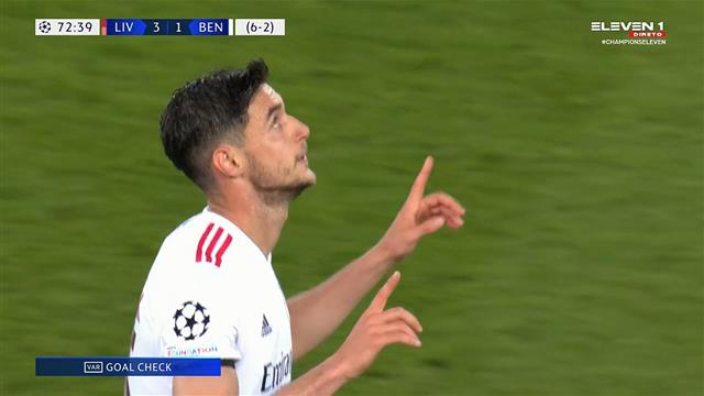 سجل فريق بنفيكا البرتغالي هدفه الثاني في شباك ليفربول الإنجليزي، في مباراتهما الجارية حاليًا ببطولة دوري أبطال أوروبا.