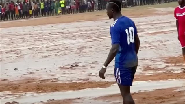في مقطع فيديو نُشر على حسابه على "إنستجرام"، يمكن رؤية ماني وهو يلعب على أرضية موحلة إلى جانب اللاعبين المذكورين أعلاه والأصدقاء من قريته.
