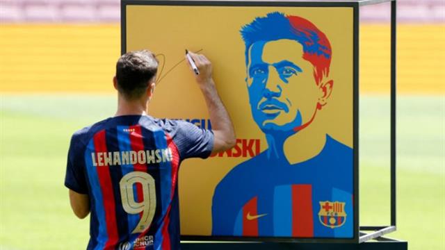 ومنح برشلونة القميص رقم 9 لليفاندوفسكي الوافد الجديد للفريق الكتالوني، وقد ظهر البولندي في مؤتمر صحفي لتقديمه للجمهور ووسائل الإعلام اليوم الجمعة وبرفقته لابورتا ومسؤولي البلوجرانا.