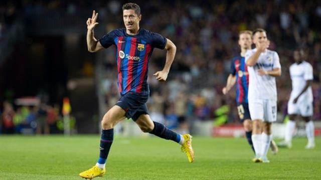 وسجل ليفاندوفسكي هاتريك في المباراة التي حسمها برشلونة بالفوز بنتيجة (5-1).