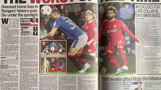 أما صحيفة "ديلي ميل" الأسكتلندية، نشرت صورة محمد صلاح وكتبت "سبعة أهداف ومحمد صلاح أودى بـ فان برانكهورست إلى الجحيم".