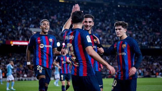 روبرت ليفاندوفسكي يقود الهجوم بجانب رافينيا وديمبلي، بينما يعود فرينكي دي يونج أساسيًا في وسط الملعب، بجانب بيدري وبوسكيتس.