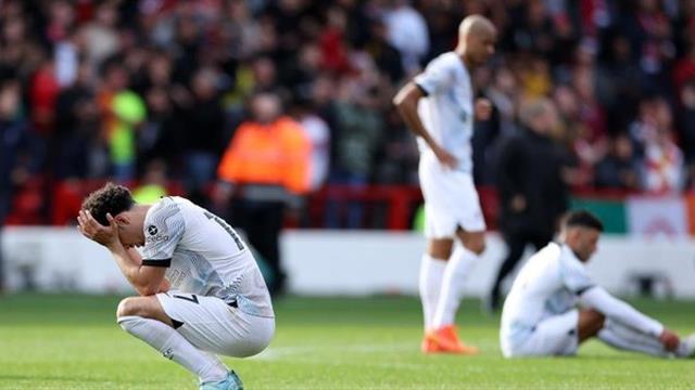 ليفربول يكتب رقمين سلبيين بعد خسارته أمام نوتينجهام فورست