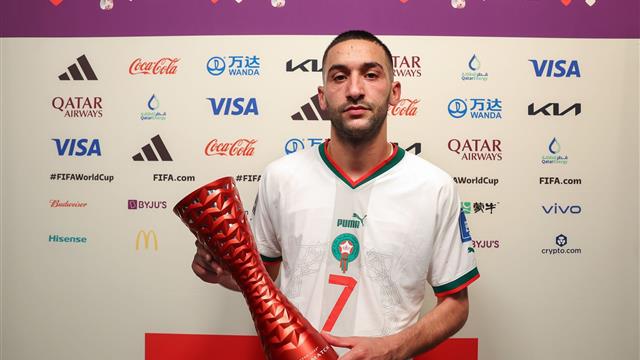 حصل نجم تشيلسي الإنجليزي، المغربي الدولي حكيم زياش على جائزة أفضل لاعب في مباراة أسود الأطلس أمام بلجيكا، في بطولة كأس العالم قطر 2022.