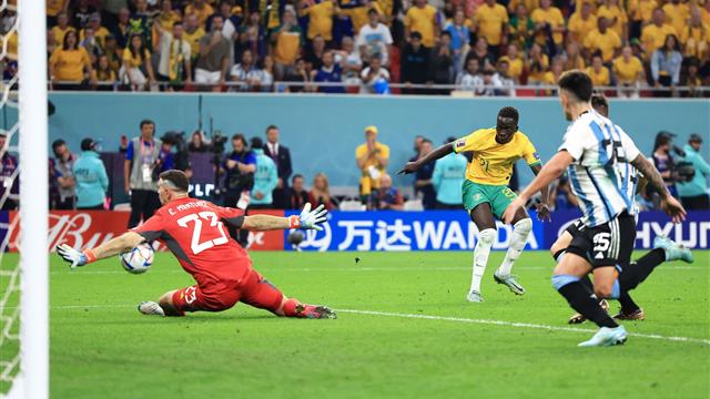 بالدقيقة 77 سجل كريج جودوين هدفًا لأستراليا، أخطأ إنزو فرنانديز وسدد الأسترالي في مرمى مارتينيز الذي وقف ساكنًا يشاهد الكرة وهي تسكن مرماه.