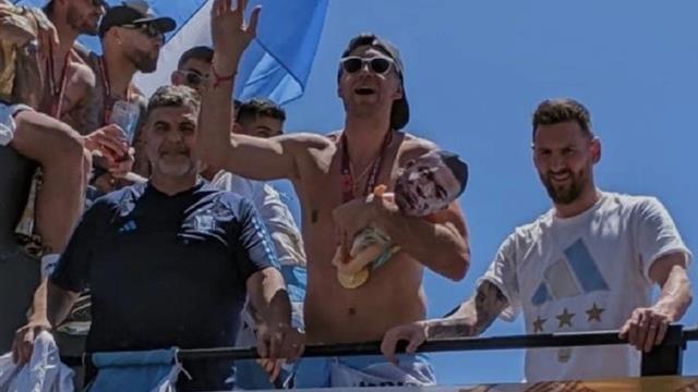 خلال الاحتفالات في الأرجنتين، واصل مارتينيز البالغ 30 عامًا، سخريته من مبابي، من خلال حمل دمية طفل عليها وجه الفرنسي.