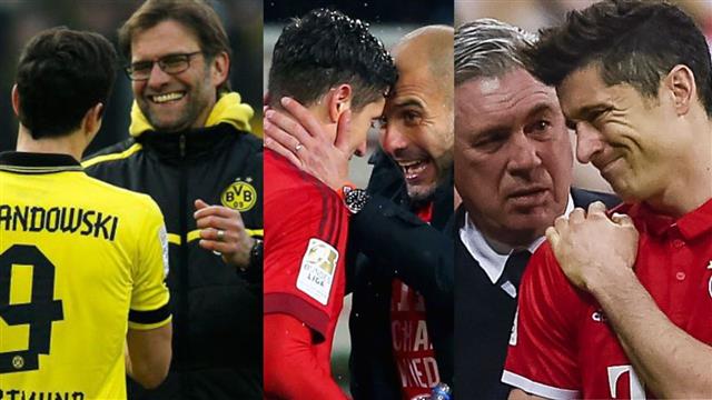 ليفاندوفسكي انفجر مع بوروسيا دورتموند تحت قيادة يورجن كلوب، قبل أن يتم تطويره تحت قيادة الإيطالي كارلو أنشيلوتي ثم بيب جوارديولا في بايرن ميونخ، ثم اللعب تحت قيادة تشافي هيرنانديز هذا الموسم مع البلوجرانا.