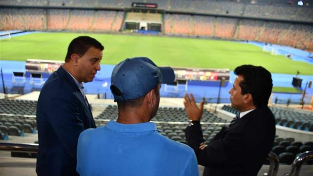 بالصور | وزير الرياضة يتفقد استاد القاهرة استعدادًا لـ مباراة الأهلي والزمالك