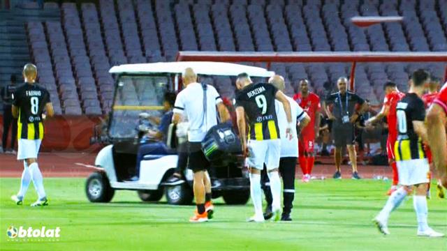 فيديو | كريم بنزيما يغادر مباراة اتحاد جدة والوحدة مصابًا